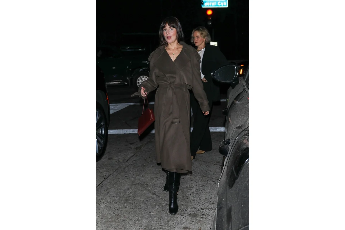 After showcasing several Los Angeles-inspired looks in recent weeks, Johnson’s current appearance signals a return to classic seasonal dressing, one that resonates especially with those navigating east coast winters. The actress’s choice of outerwear and boots created a strong foundation, but it was the Dalia baguette bag by The Row that truly distinguished her outfit and drew the eyes of fashion watchers.