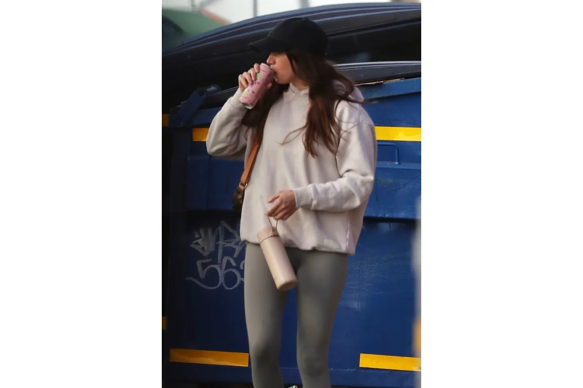 During her latest outing, Ana de Armas wore a vibrant pink sports bra with matching DFYNE leggings. She carried necessities such as her iPhone, a long-sleeved shirt, and a reusable Frank Green water bottle. Her look was accessorized with a slim gold chain necklace and sunglasses, blending both practicality and style. This appearance reflected her ongoing dedication to regular exercise throughout December, as she had previously chosen a coordinated set from Women’s Best last week. Earlier in the month, she was also spotted leaving another intense gym session in Studio City.